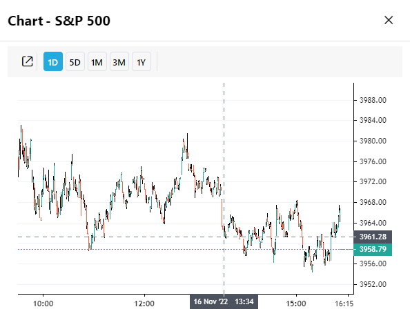 - Clicking on a 2D index chart (alongside a market index in the top panel) will open a full-scale chart view of the selected market index (depicted below).