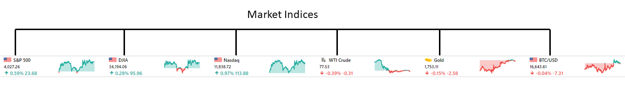 - Each market index displayed on the top panel will be accompanied by a color-coded arrow.