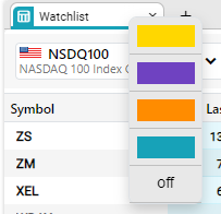 - To link the widgets, right-click on the widgets you wish to link and select the same color for all the widgets you wish to be linked. If you select a new symbol in one of the widgets, all the other widgets linked to it will be updated automatically to match that selection.
