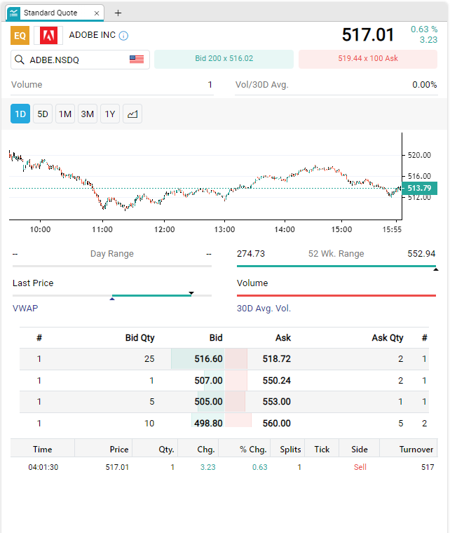 - You can select the symbol you wish to view by using the symbol search option at the top of the Standard Quote.