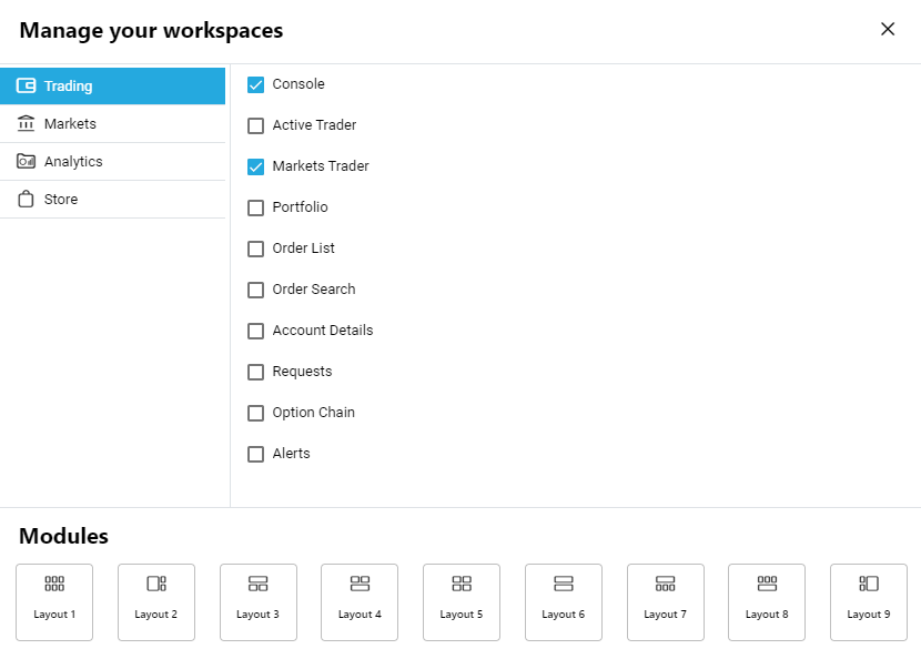 - By default, this workspace provides you with two separate Watchlist areas linked with Advanced Order Ticket and Detail Quote. But you have the ability to revamp and configure it as you prefer.